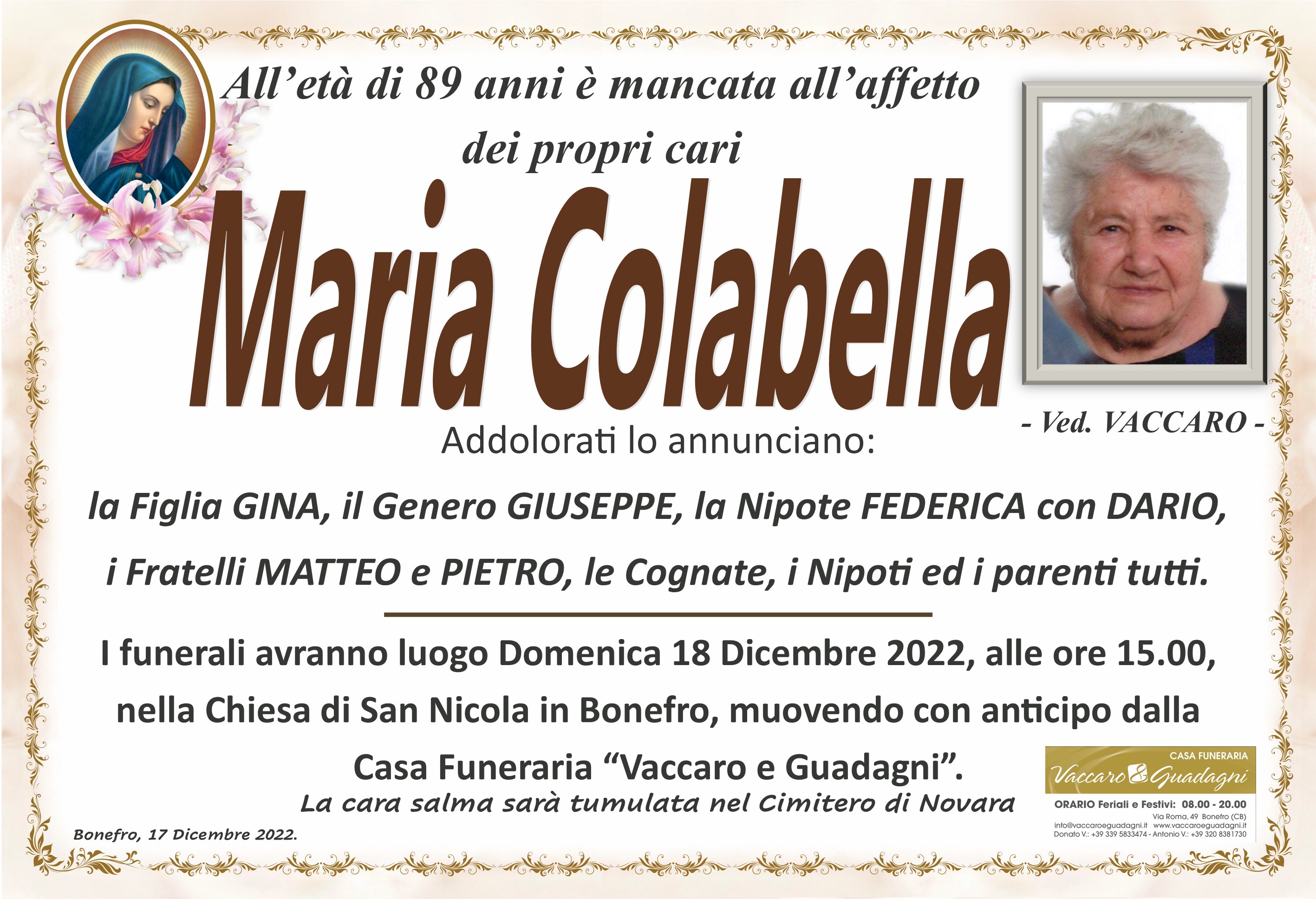 ONORANZE FUNEBRI VACCARO E GUADAGNI snc - V. ROMA 138 - 86041 - BONEFRO (CB)